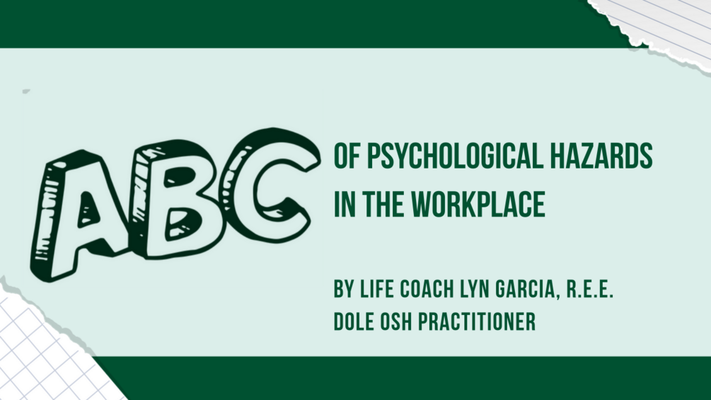 There are mental hazards in the workplace that when not recognized and addressed will lead to poor performance and worst, poor mental health. Let us do something today to create a psychologically safe working environment.